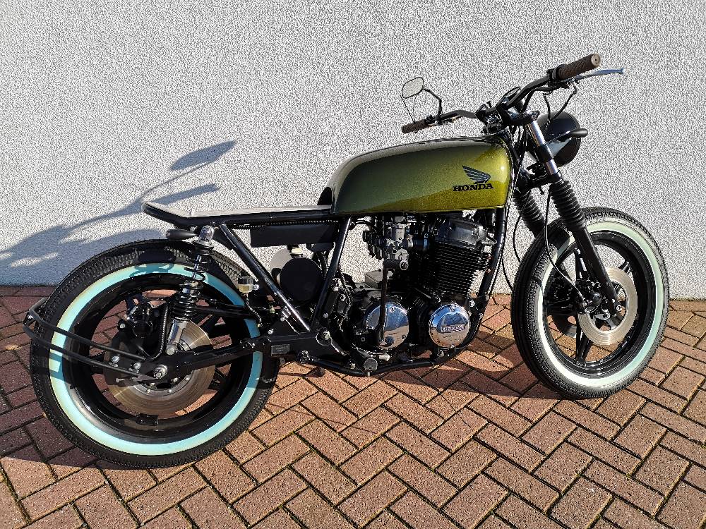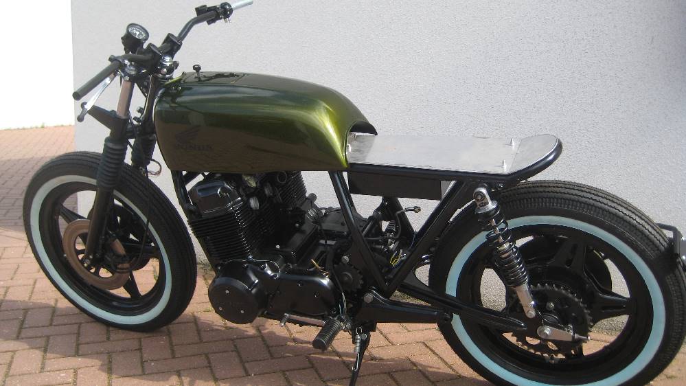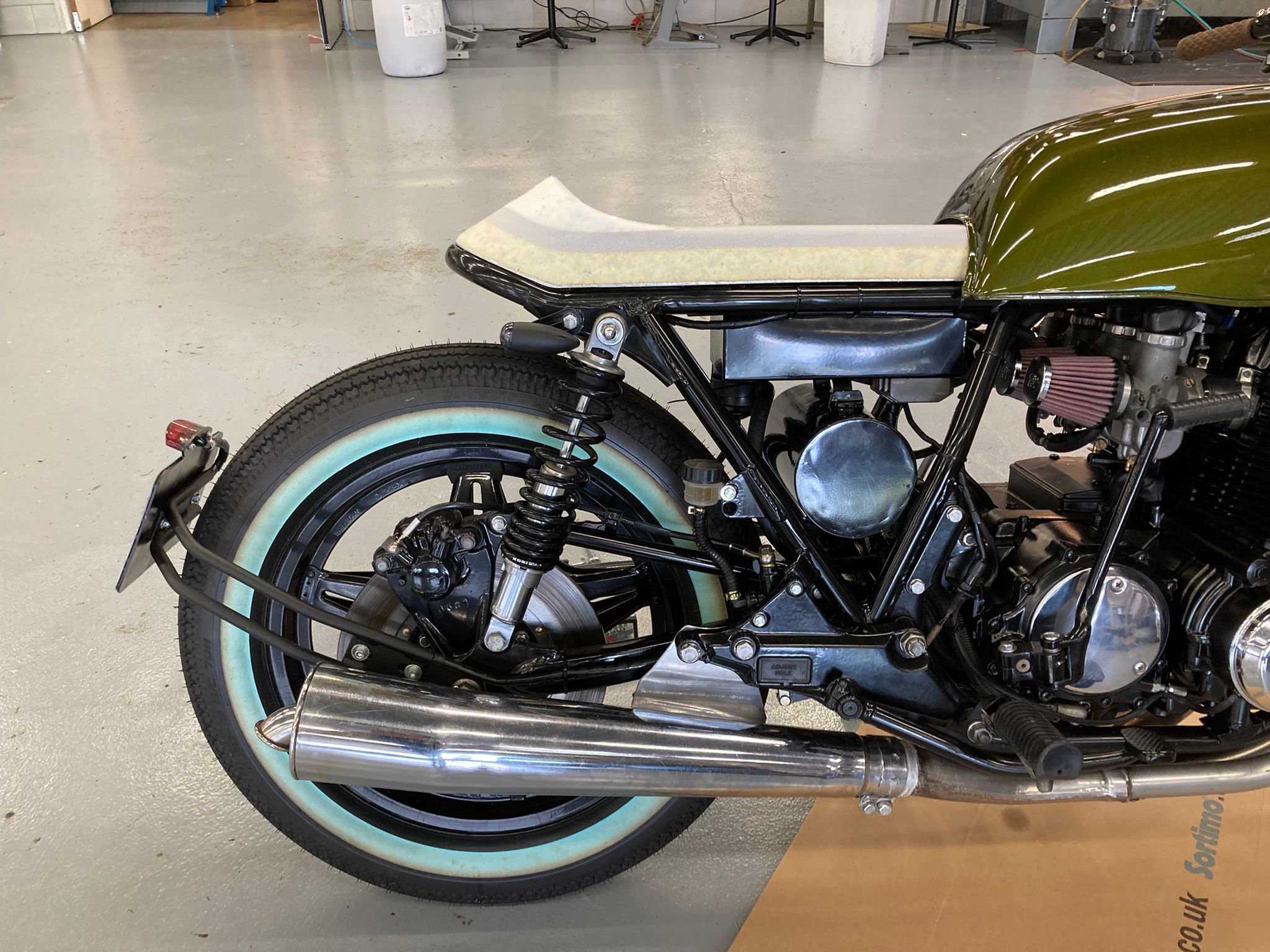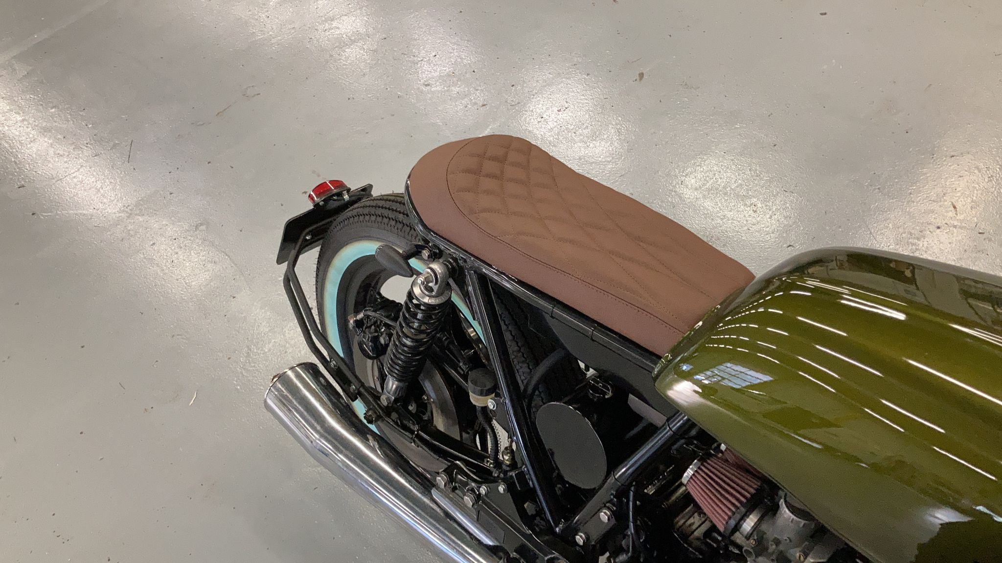 De brandstof tank was niet aanwezig, achteraf bleek het complete gedeelte waar het schakelmechanisme mee verbonden is te ontbreken. Ook zat er geen stuur bij en was er een voorpoot krom. Op de foto's hier onder zie je hoe we de motor